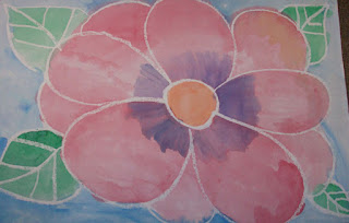 For 3rd Grade: Georgia O'Keeffe is a required artist. I love making this zoomed in flowers with the kids. We use white oil crayon to draw our flowers. I have tons of old calenders that I've pulled apart and laminated to use as prints. I have enough that each student can pick their own flower to keep at their seat while they work throughout the project. Finished off with watercolor paints over white oil crayon for a lovely resist.